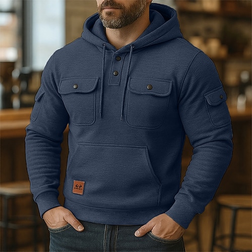 Per uomo Felpa con cappuccio Felpa con cappuccio abbottonata Felpa con cappuccio in pile Felpa con cappuccio tattica Nero Borgogna Blu marino Blu Cachi Con Cappuccio Semplice Multi-tasche Sport