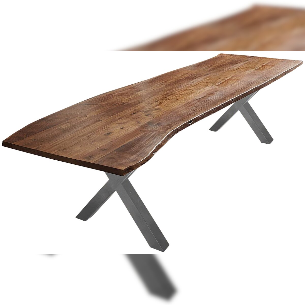 SAM® Esstisch Baumkante massiv Akazie nussbaum 280 x 100 X-Gestell silber XAVER
