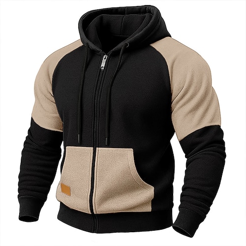 Per uomo Felpa con cappuccio Felpa con cappuccio a zip intera Felpa con cappuccio in pile Nero Blu marino Cammello Grigio chiaro Grigio scuro Con Cappuccio Semplice Patchwork Sport Outdoor