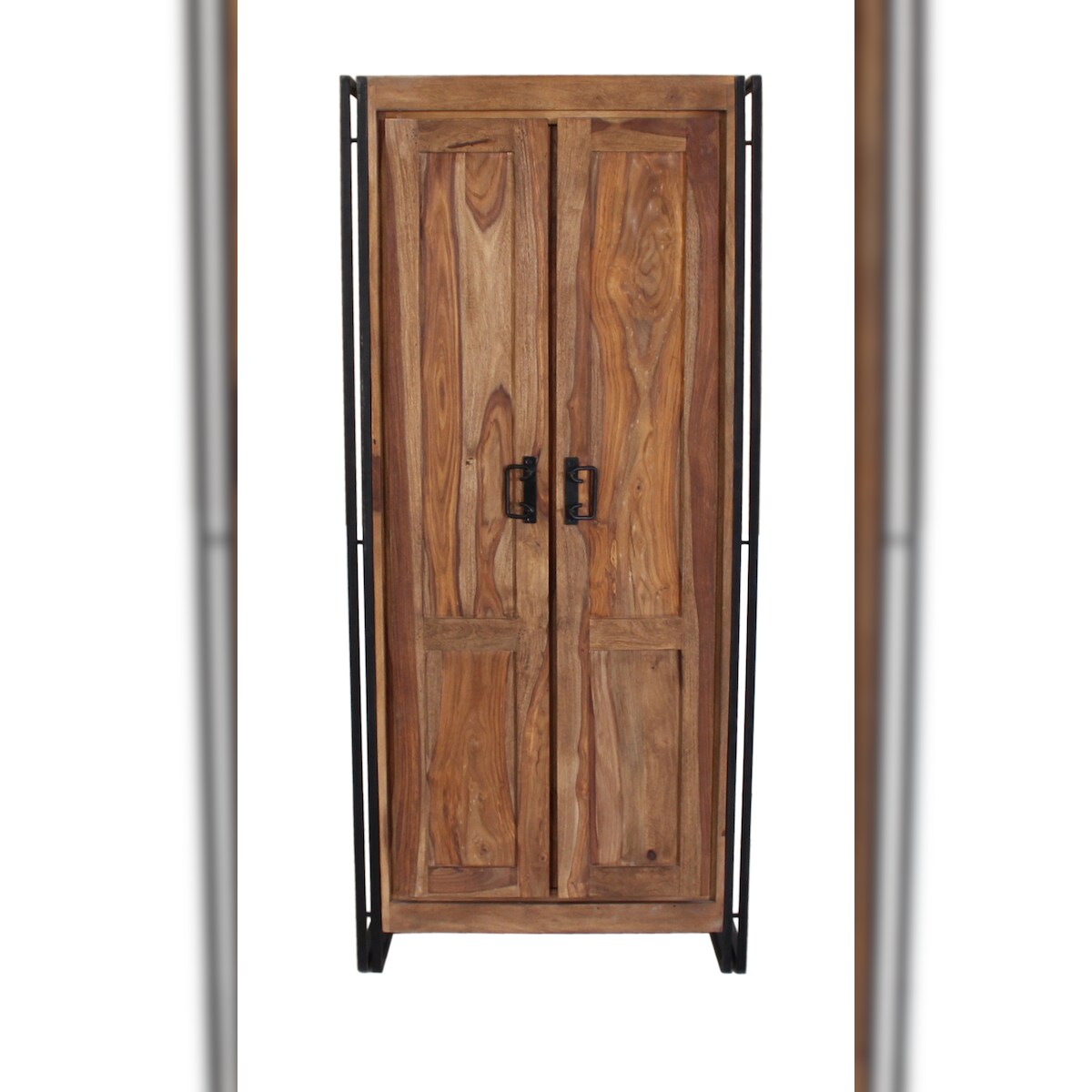 SIT Möbel Dielenschrank Akazie |L 80 x B 45 x H 180 cm | natur / antikschwarz | 09264-01 | Serie PANAMA