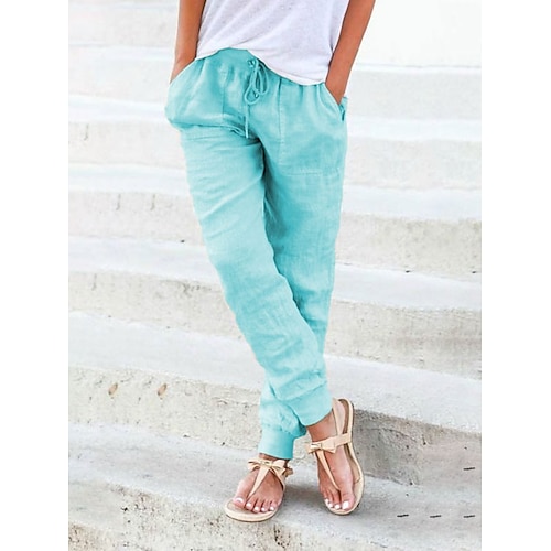 Per donna Finto cotone e lino Joggers Moda Streetwear Comfort Lunghezza intera Misura del girovita medio Semplice Tasca Elastico in vita Comodo All'aperto Confortevole Streetwear Abbigliamento