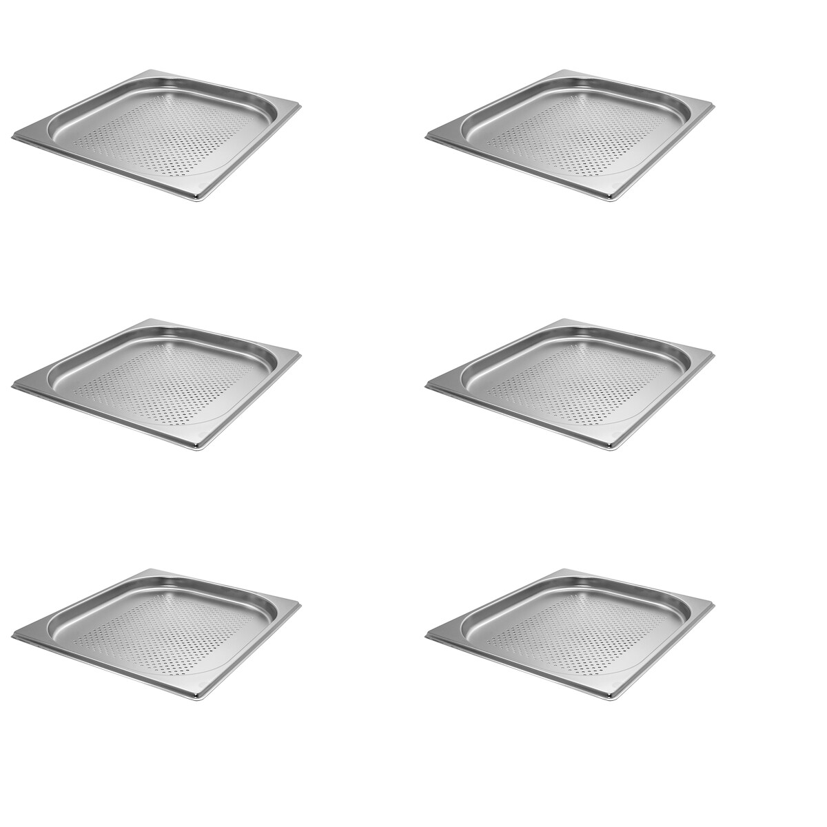 AcMax 6 Stück GN 1/2 Gastronormbehälter GN-Behälter Edelstahl 1,25 Liter Tiefe 20mm gelocht