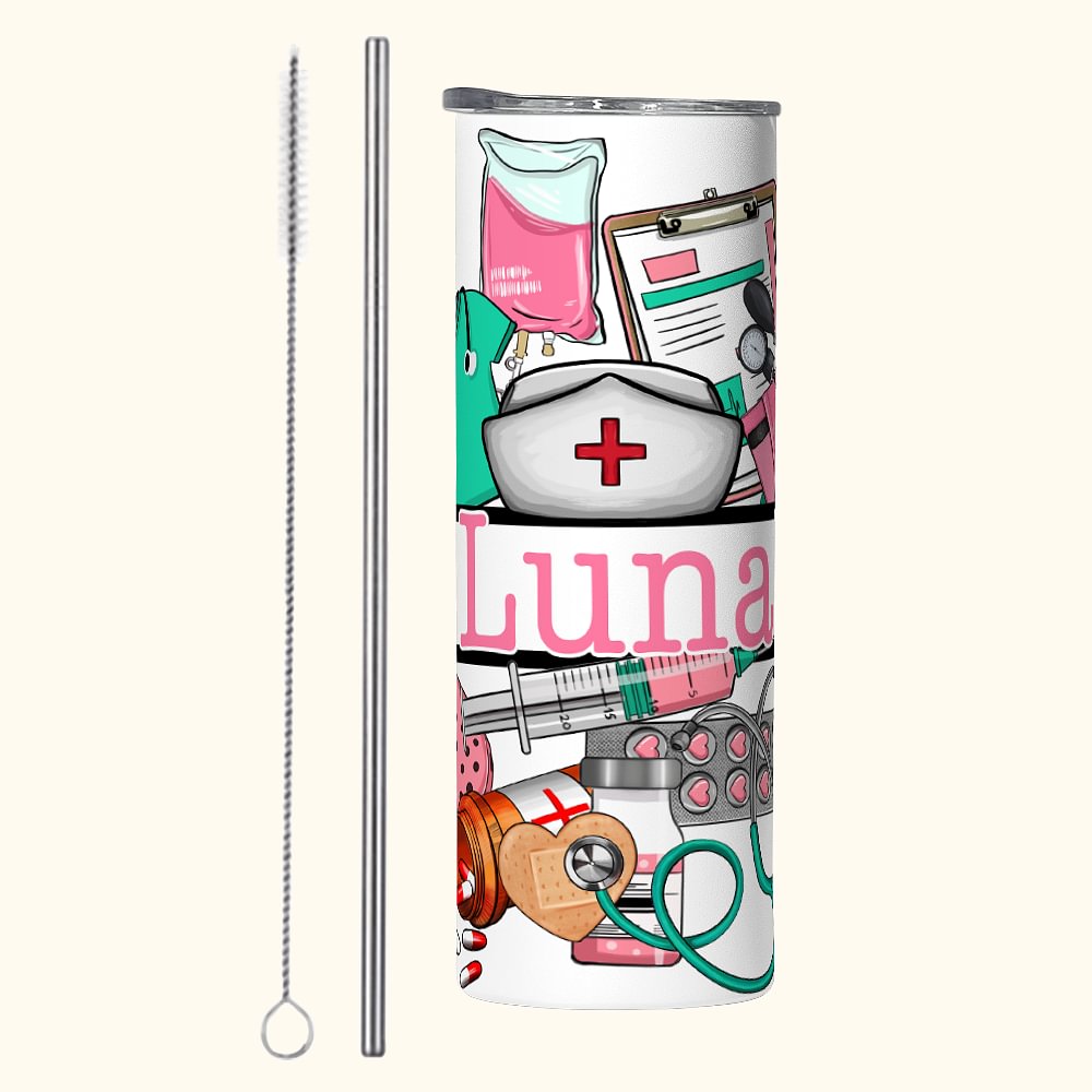 Bicchiere da 20 oz Skinny personalizzato multicolore a tema medico con nome Regalo per la settimana dell'infermiera per il personale medico infermieri