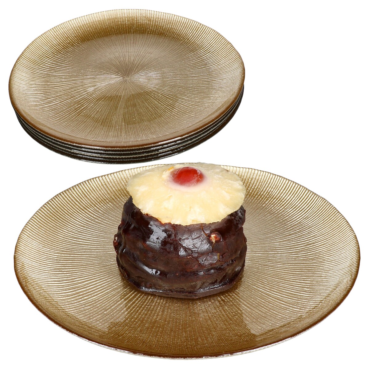 6x Kairo Gold Kuchenteller Glas 6 Personen Dessertteller Relief