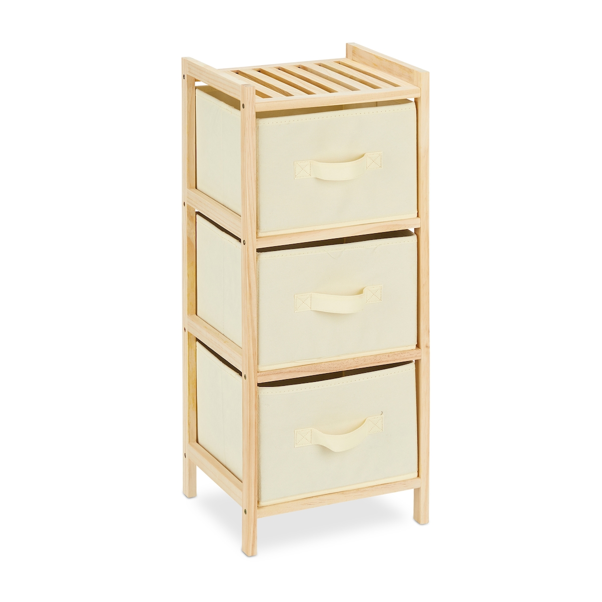 Relaxdays Badregal mit 3 faltbaren Körben, Aufbewahrung, kleines Korbregal, Holz, HBT: 65 x 28 x 25,5 cm, natur/beige