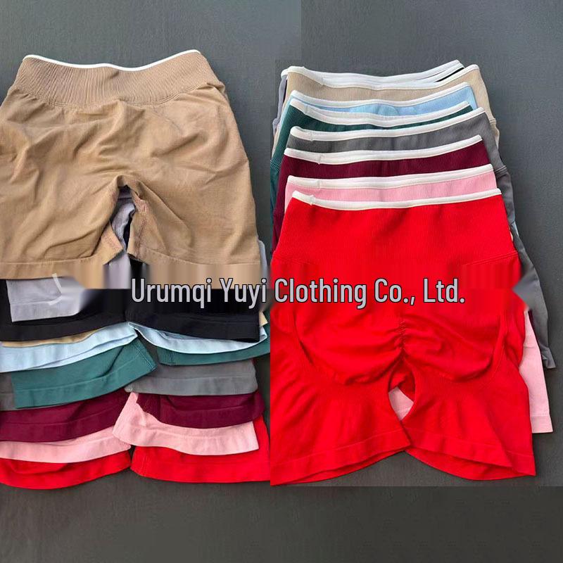 TEVEO Damen Farbblock Nahtlose Yoga-Shorts - Pfirsich Po-Lifting Fitness-Hose cm