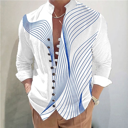 Per uomo Sfumatura Onde Camicia Camicia con colletto alla coreana Manica Lunga Casual Vacanza Abbigliamento quotidiano Uscire Primavera Autunno Collo alla coreana Colletto alla coreana Bottonato