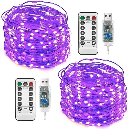 Luci a Stringa Fatate LED Luci a Filo di Rame Dimmerabili con Telecomando 50M-500Leds 30M-300Leds 20m-200Leds 10m-100leds per Festa Matrimonio Decorazioni per Albero e Camera da Letto