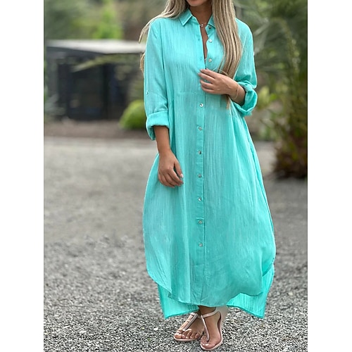 Per donna Nero Bianco Giallo Autunno Inverno Abito maxi Abiti in cotone e lino Abito Camicia Vestito Casual Moda Essenziale Moderno All'aperto Vacanza Quotidiano Vestibilità comoda Semplice Colletto