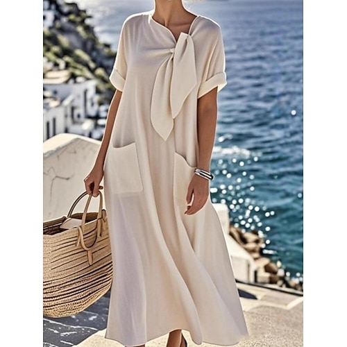 Per donna Abito maxi Abito a trapezio Abito Estivo Casual Quotidiano Vestibilità comoda Semplice Manica Corta Scollo a V Blu Marrone chiaro Marrone Verde militare Estate