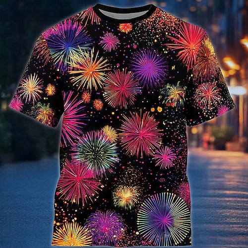 Capodanno Per uomo Buon anno Fuochi d'artificio 2026 Maglietta Manica Corta maglietta Stampa 3D Girocollo Camicia Esagerato Designer Artistico Feste Streetwear Club Nero 1 Nero 3 Nero 2 Autunno