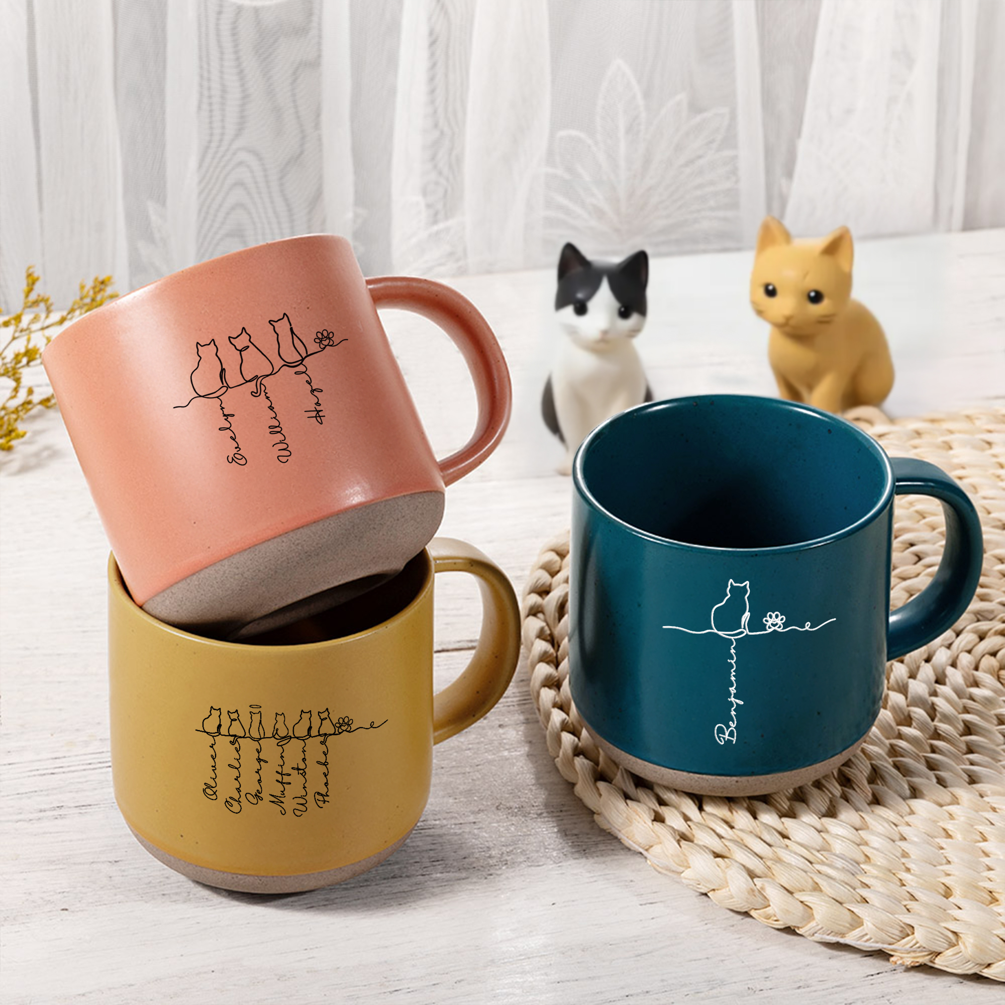 Henkilökohtainen söpö Line Style Cat Keraaminen muki 1-7 nimet ja Angel Halos Syntymäpäivä hyväksyminen vuosipäivä Memorial lahja kissan omistajille ystäville Lovers