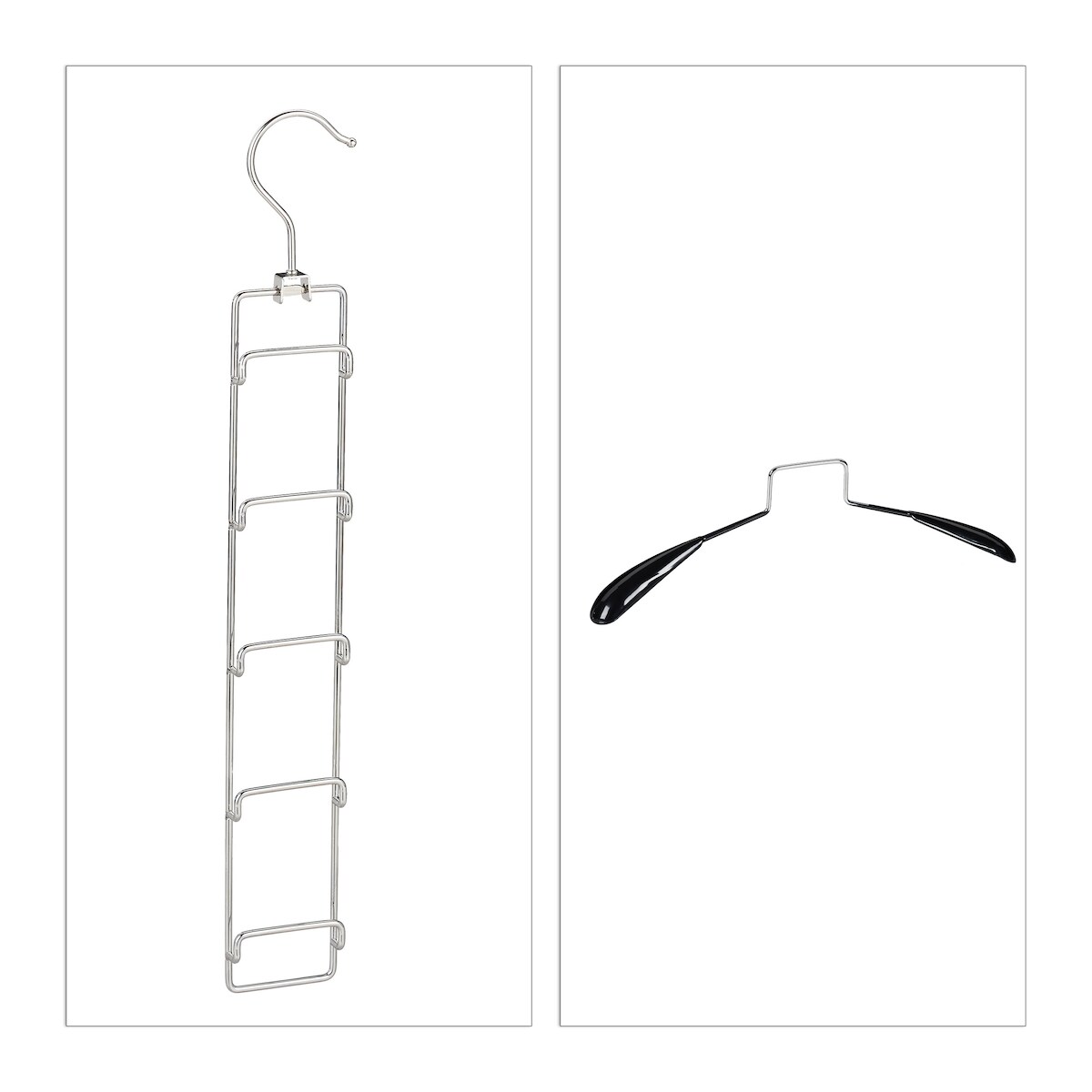 Relaxdays Mehrlagiger Kleiderbügel 3er Set, 5 Bügel pro Aufhängung, Oberbekleidung, platzsparend und rutschfest, schwarz