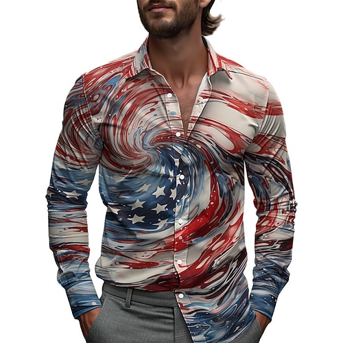 Per uomo Bandiera Americana Camicia Camicia casual Camicia da Spiaggia Manica Lunga Casual Confortevole Vacanza Streetwear Camicia hawaiana Primavera Autunno Bavero Stampato Rosso Blu reale Blu
