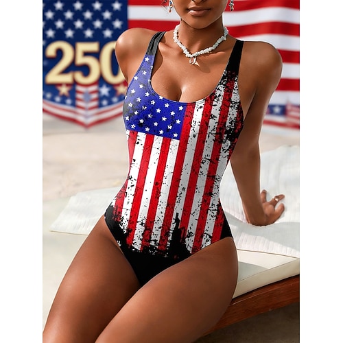 costume da bagno da donna per il giorno dell'indipendenza americana, costume intero sgambato, abbigliamento da spiaggia estivo, costumi da bagno senza maniche con scollo a U e bandiera grafica