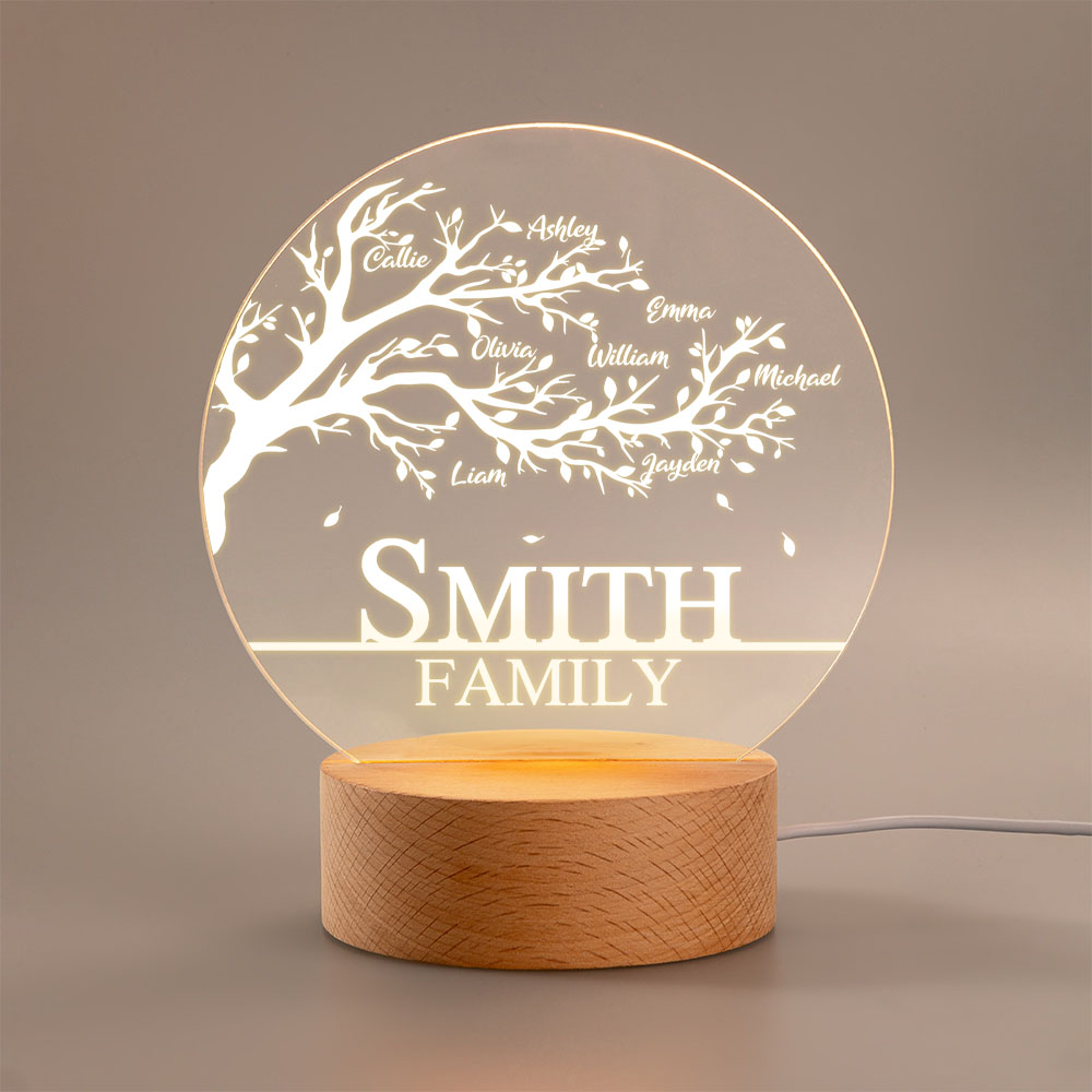 Luce notturna personalizzata dell'albero della vita della famiglia in acrilico con base in legno Decorazione per l'asilo nido Festa della mamma Regalo di compleanno per la famiglia