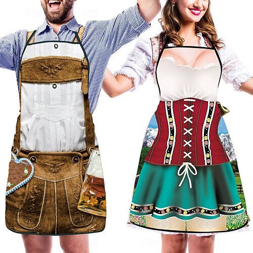 Carnevale Birra Oktoberfest 2 Pezzi Grembiule Costumi Divertenti Cameriera Coppia Oktoberfest Monaco di Baviera Wiesn Prati Coppia Per uomo Per donna Carnevale Festa della birra Panno in stile
