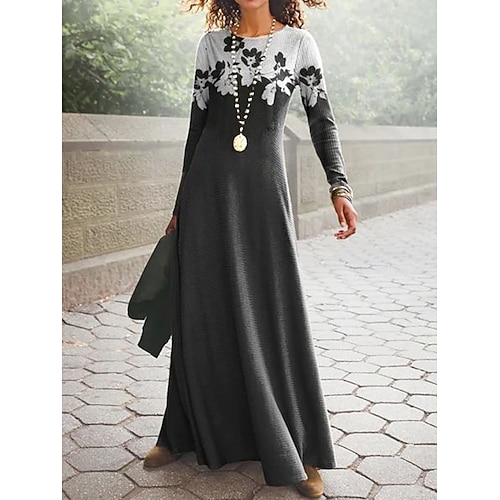 Per donna Abito maxi Abito a Tubino Vacanza Casual Boho Quotidiano Vestibilità regolare Plaid Manica Lunga Colletto a Camicia Blu Giallo Rosa Rosso Primavera Autunno Inverno