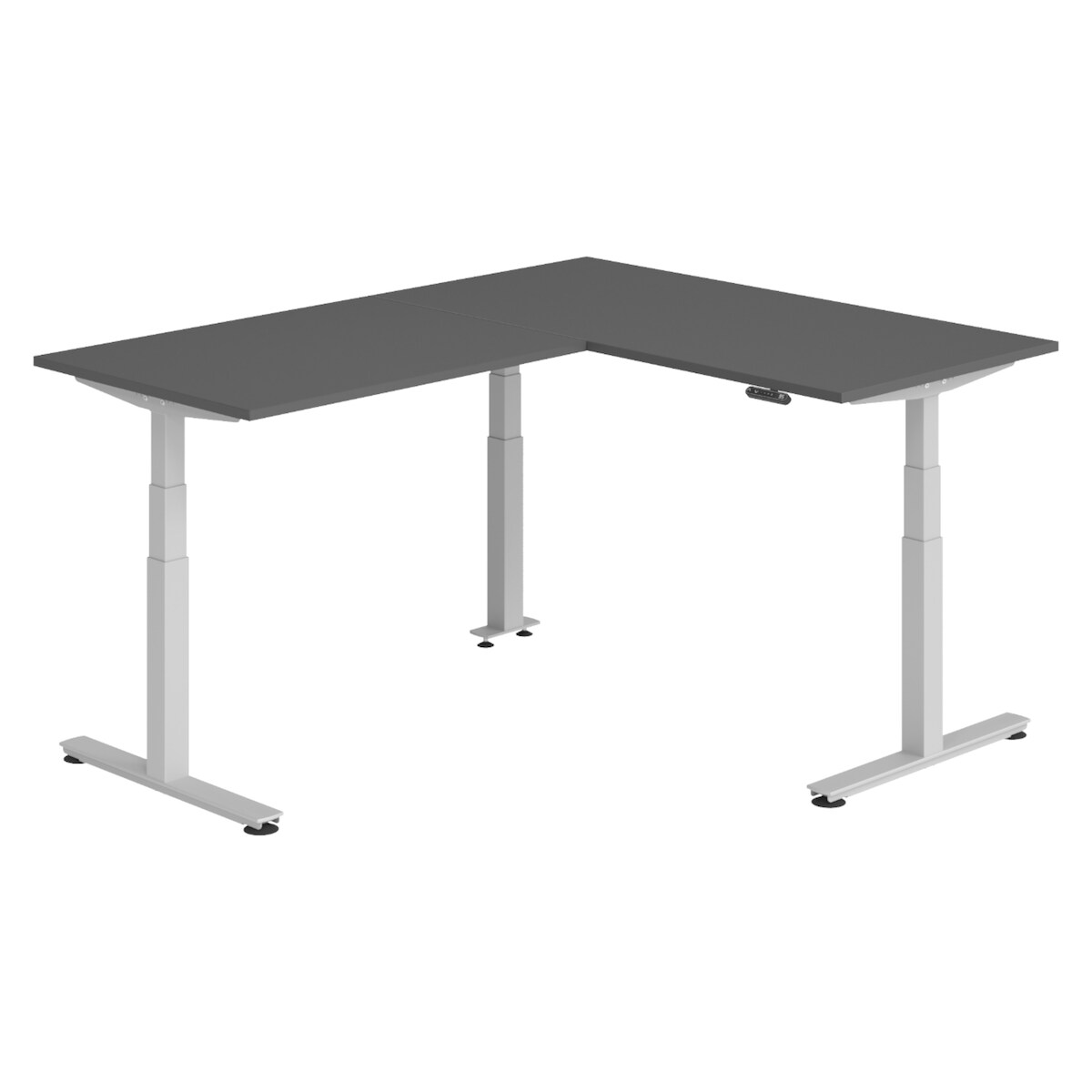 bümö Eckschreibtisch elektrisch höhenverstellbar L-Form: 160 x 200 cm in graphit, Gestell silber - Stehschreibtisch mit Memory-Steuerung,