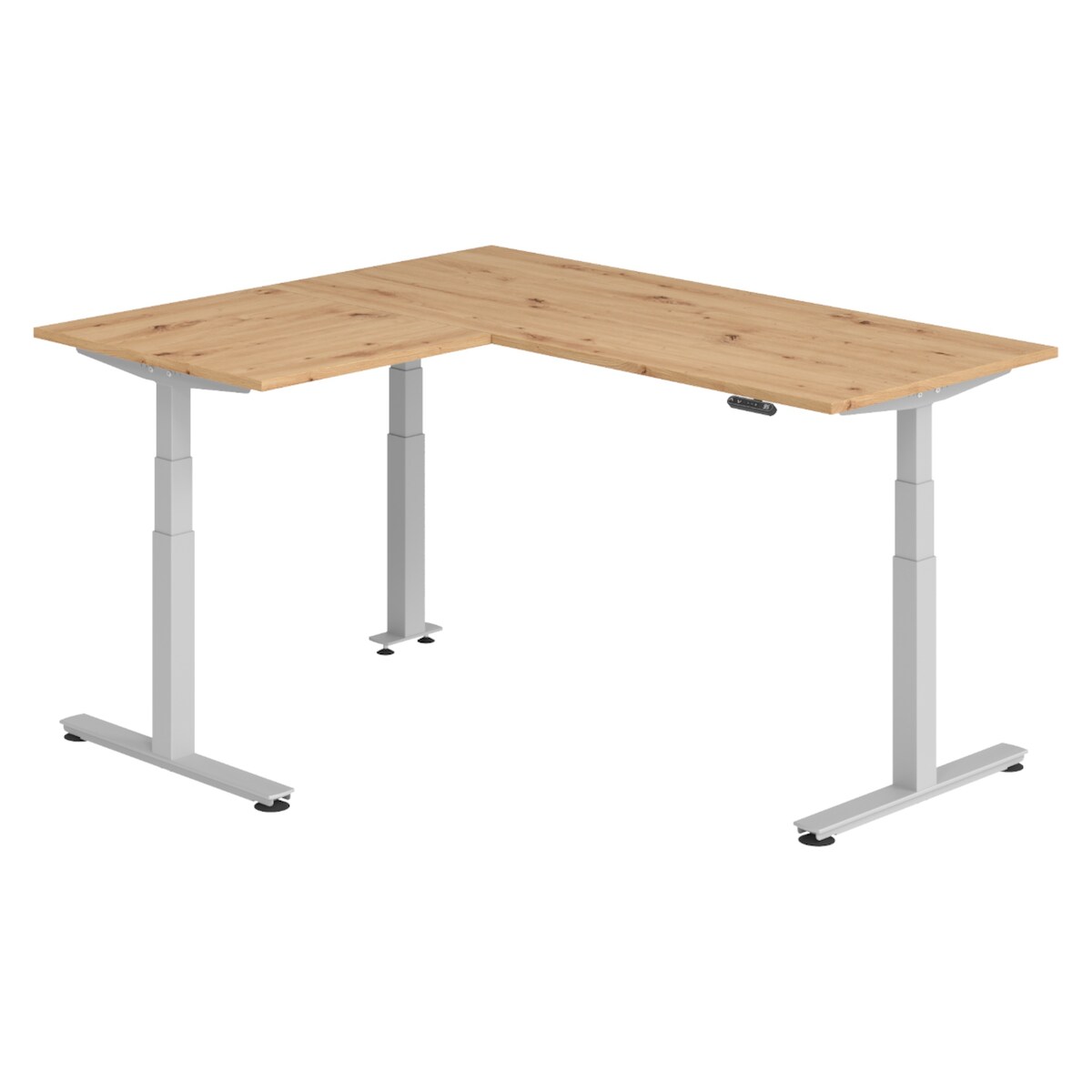 bümö Eckschreibtisch elektrisch höhenverstellbar L-Form: 180 x 160 cm in Asteiche, Gestell silber - Stehschreibtisch mit Memory-Steuerung,