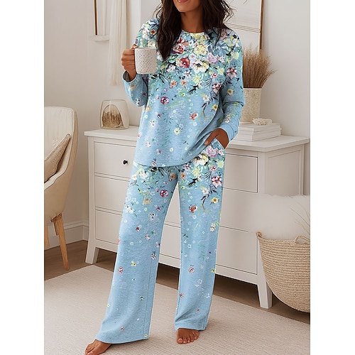 Per donna Moda Maglietta Set di Pantaloni Manica Lunga Girocollo Floreale Grafico Stampato Casual Quotidiano Rosa Blu Viola Primavera Vestibilità regolare