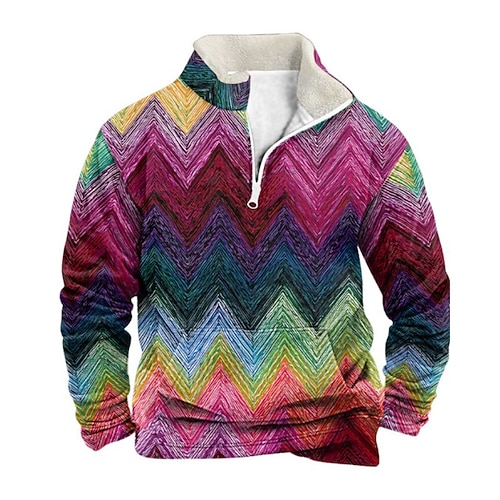 Per uomo A righe Stampa Felpa con cerniera a un quarto Felpe Manica Lunga Felpa Mezza zip Vintage Retrò Stampa Ferie Uscire Festival Stampato Autunno Inverno