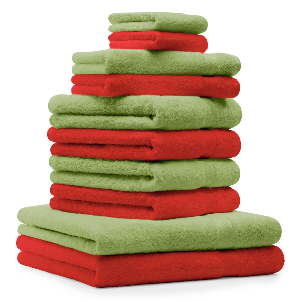 Betz 10-tlg. Handtuch-Set CLASSIC 100% Baumwolle 2 Duschtücher 4 Handtücher 2 Gästetücher 2 Seiftücher Farbe rot und apfelgrün