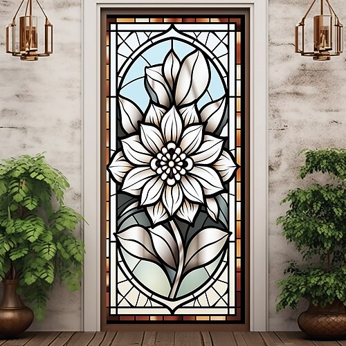 fiore di vetro colorato porta copre decorazione murale porta arazzo tenda della porta decorazione sfondo porta banner rimovibile per porta d'ingresso indoor outdoor decorazione della stanza di casa