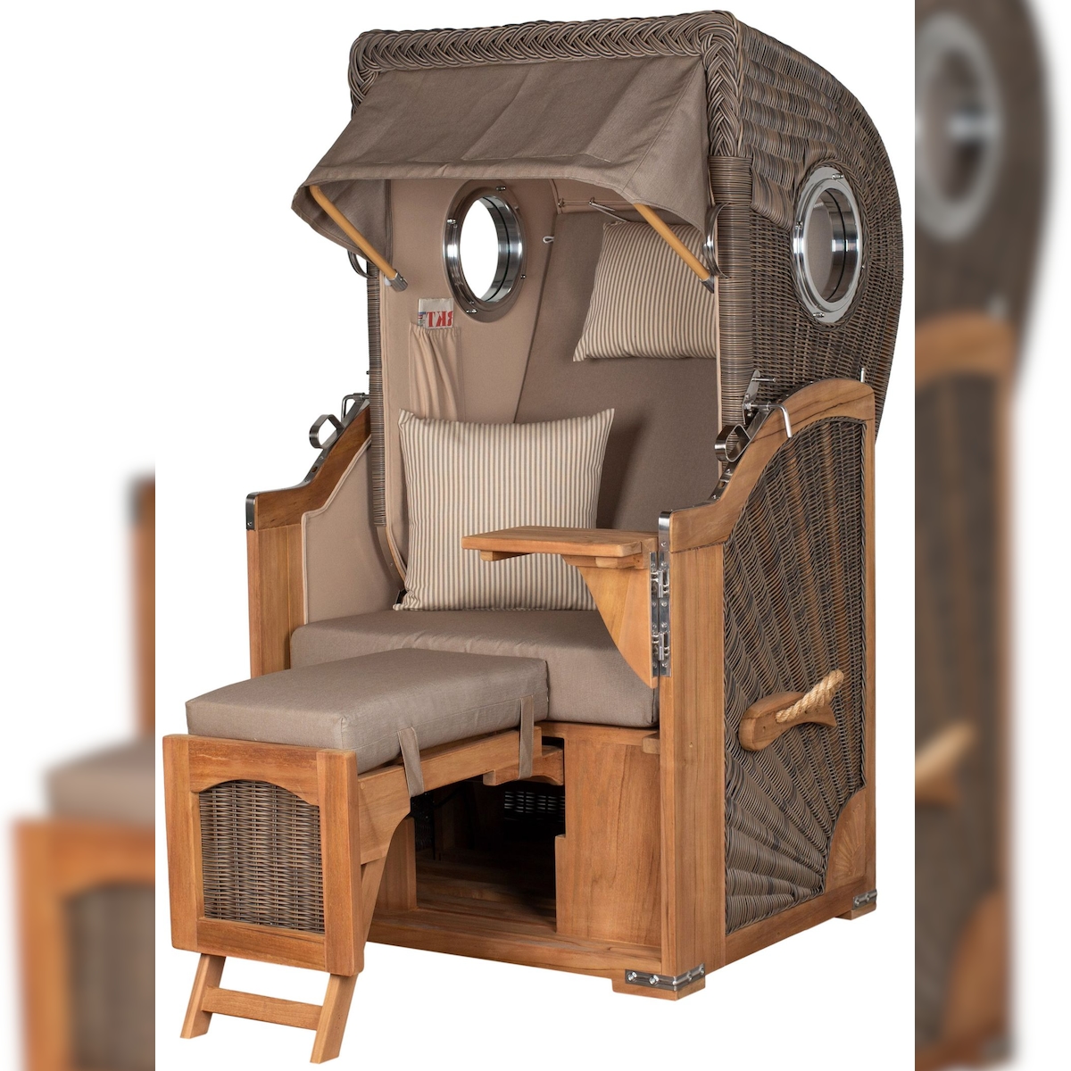 Mr. Deko Strandkorb - bene living - Ammersee Teak Bullauge - PE shell - Modell 506 - inkl. Liftersystem