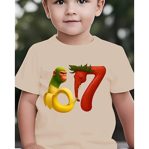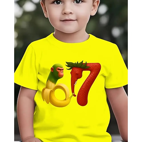 maglietta estiva casual a maniche corte per ragazzi con banana, gorilla, fragola, elefante stampa cartoon numero 67 - giallo brillante con rosso design verde, maglietta comoda, maglietta grafica