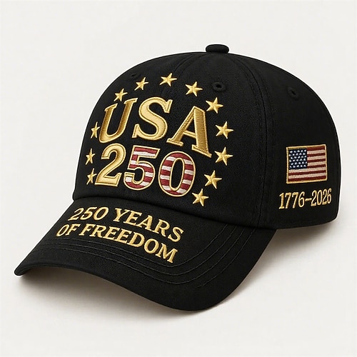 Per uomo Unisex Cappello per il 250° anniversario degli Stati Uniti Cappellino da Baseball Cappello da Sole Cappello da Camionista Nero Bianco Poliestere / Poliammide Regolabile Patriotico Vacanza