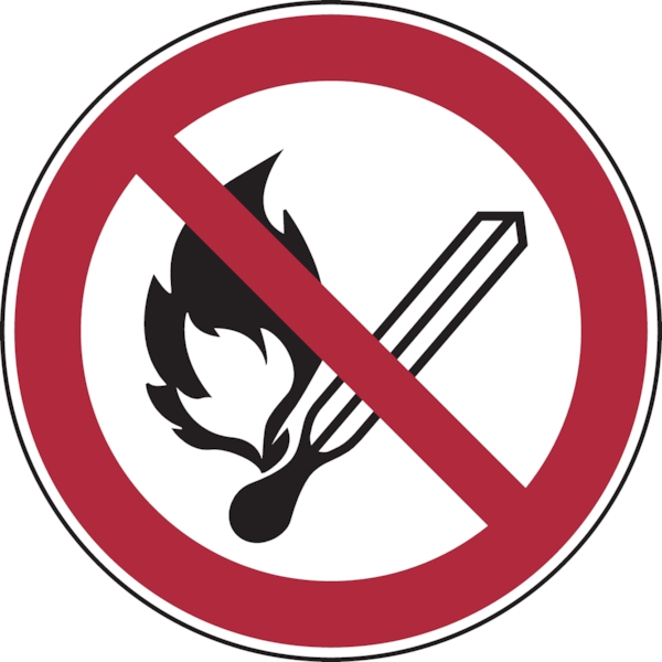 Verbotsschild, Feuer, offenes Licht und Rauchen verboten P003 - ASR A1.3 (DIN EN ISO 7010) - 100 mm Folie selbstklebend