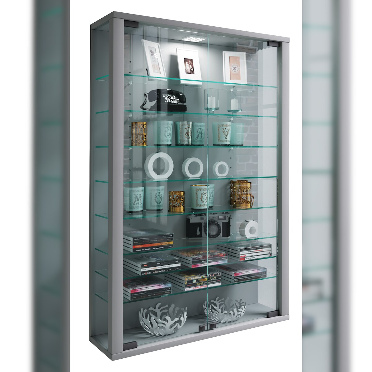 VCM Wandvitrine Vitrosa Silber H. 91 x B. 59 x T. 18 cm