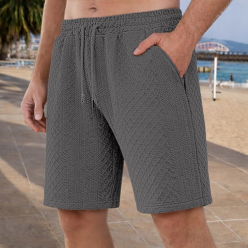 Per uomo Pantaloncini Estivi Shorts da Spiaggia Pantaloncini casual Maglia a trecce Pantaloncini strutturati Jacquard Coulisse Elastico in vita Tinta unica Comodità Lunghezza al ginocchio Quotidiano