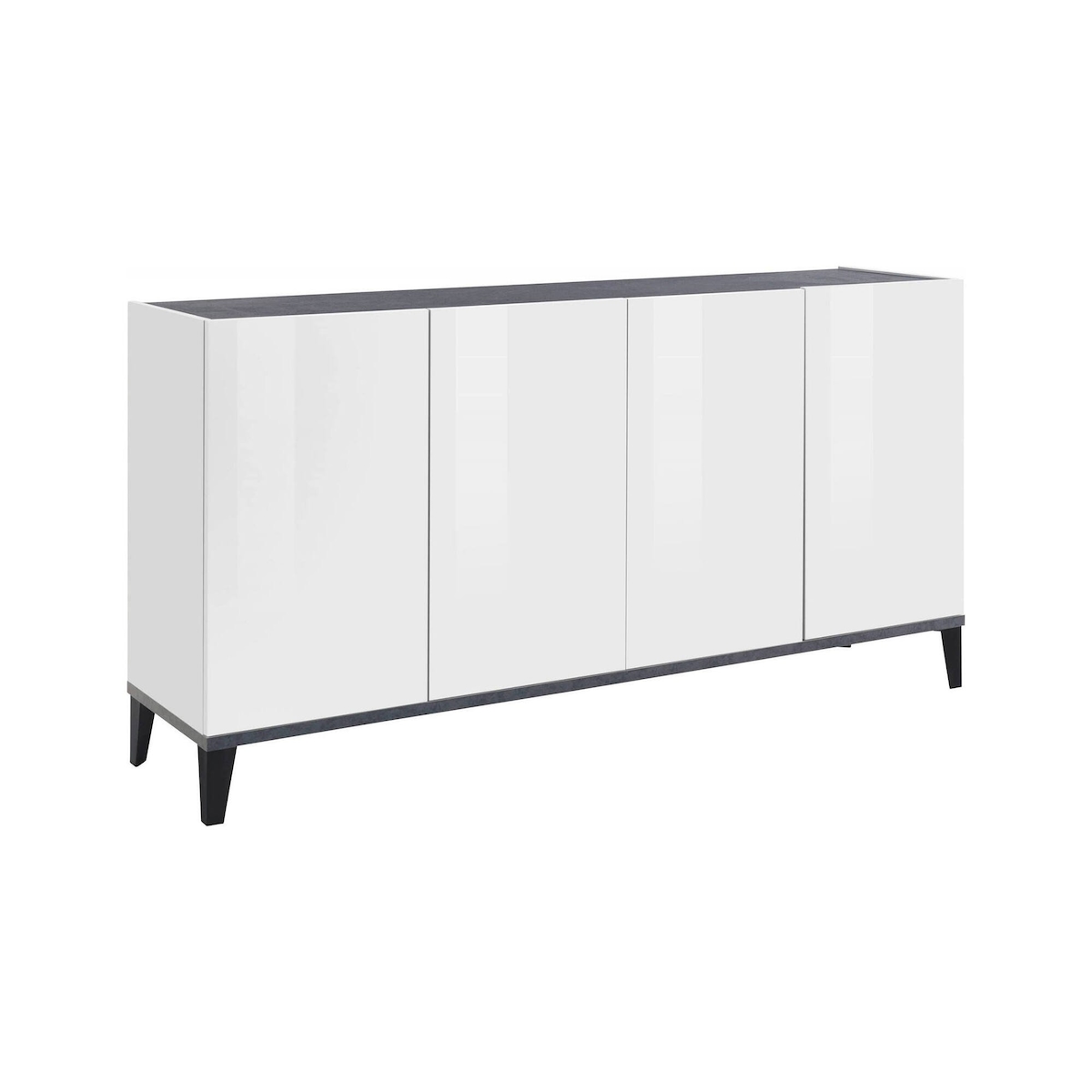 Dmora Kommode Liam, Küchen-Sideboard mit 4 Türen, Wohnzimmer-Buffet, 100% Made in Italy, cm 160x40h82, Weiß glänzend und Schiefer
