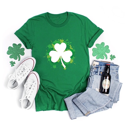 Giorno di San Patrizio Festa di San Patrizio Per donna Maglietta Trifoglio Moda Manica Corta Girocollo Top Regolari Casuale Giorno di San Patrizio Stampato Verde primavera Verde chiaro Verde militare