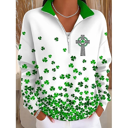 Giorno di San Patrizio Per uomo Trifoglio Irlanda Felpa Sport Moda Casual Collo Alto Con cerniera Casa Abbigliamento casual alla moda Lavoro Feste Blu Verde 2# Verde 3# Verde Autunno Tutte le stagioni