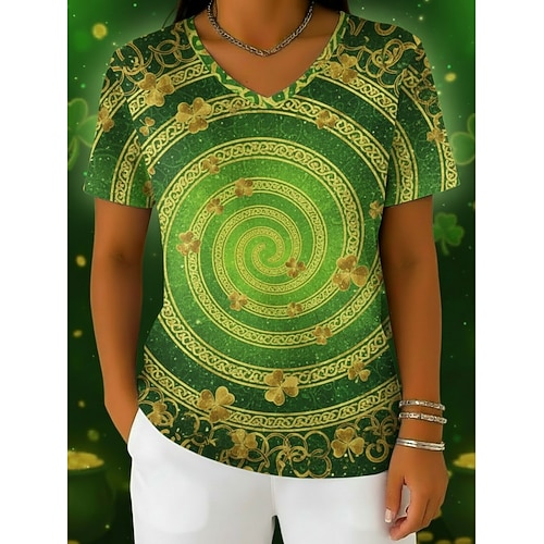 Festa di San Patrizio Per donna Maglietta Geometrico Trifoglio Elegante Classico Casual Manica Corta Scollo a V Top Regolari Quotidiano Sportivo Abbigliamento mare Stampato Verde scuro Verde Estate
