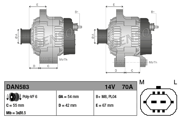 DENSO Generator DAN583 14V 70A für OPEL 1204426 13256933 6204257