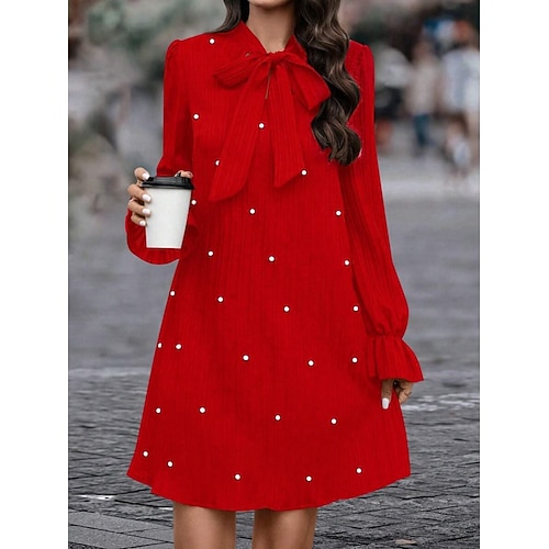 Per donna Mini Abito Vestito Casual Elegante Moda Moderno Quotidiano Vacanza Uscire Vestibilità regolare Semplice Manica Lunga Dolcevita Nero Rosso Primavera Autunno Inverno