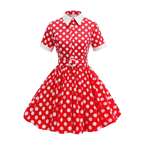 Retrò Vintage Anni 1950 Hepburn Lunghezza al ginocchio Vestito Abito a trapezio Vestito Svasato Maniche corte Pois Aderente Svasato Costume Ragazze Carnevale San Valentino Casuale Ritorno a casa