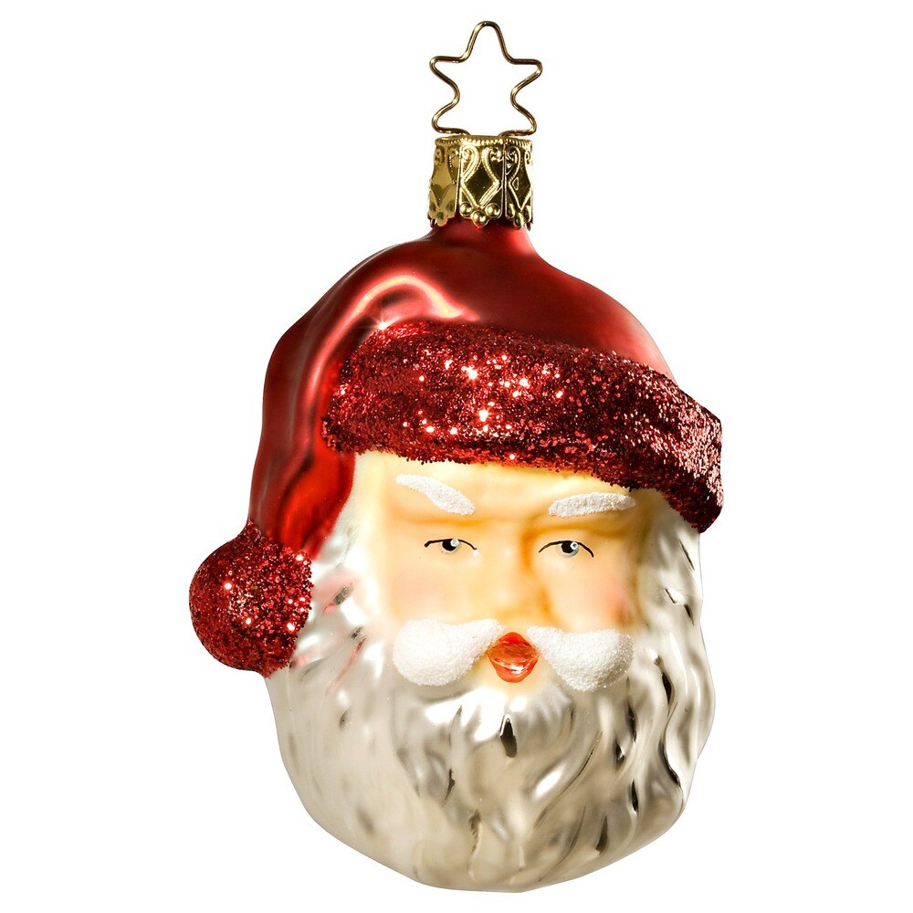 INGE-Glas Manufaktur Christbaumschmuck Weihnachtsmannkopf 8,5cm - Glas Figur Mundgeblasen & Handbemalt Weihnachtsbaum Anhänger Weihnachten Christbaumanhänger Rot Weiß