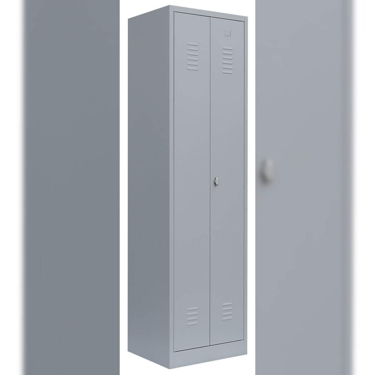 ClassiX Garderobenschrank, 2 Abteile mittig schließend, 1800 x 590 x 500 mm, lichtgrau/enzianblau