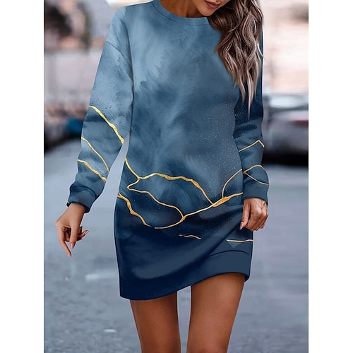 Abito Felpa Donna Abito Mini Abito Svasato Casual Vacanza Weekend Fit Regolare Grafica Colore Blocco Maniche Lunghe Girocollo Rosa Blu Reale Blu Viola Autunno Inverno