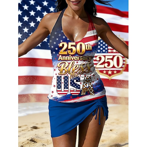 Costumi Da Bagno Patriottici Donna Bikini 2 Pezzi Costumino Cheeky Schiena Scoperta Slim Vacanza Spiaggia Grafica Bandiera V Collo Senza Maniche Costumi Da Bagno