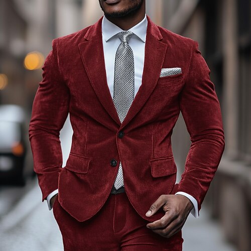 Abiti da uomo casual da cerimonia in velluto, da lavoro, con revers a lancia, neri, rossi, formali, tinta unita, vestibilità su misura, 2 pezzi, monopetto, due bottoni