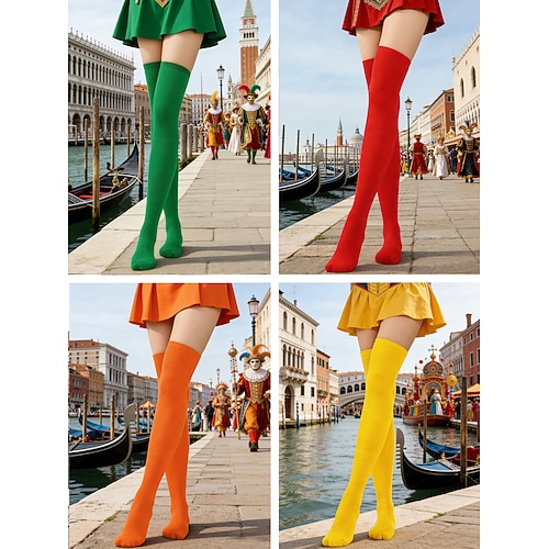 Set di calze sopra il ginocchio per la festa di Carnevale Mardi Gras - Set da 4 paia di calze thigh-high a righe e uni colorate stile festivo divertente per eventi in costume parate e celebrazioni di