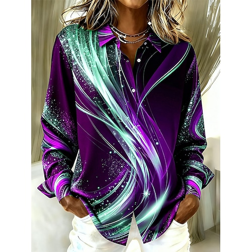 Per donna Camicia Grafico Geometrico Vintage Elegante Moderno Manica Lunga Colletto a Camicia Top Regolari Quotidiano Ferie Blu Rosso Viola Verde Autunno Inverno