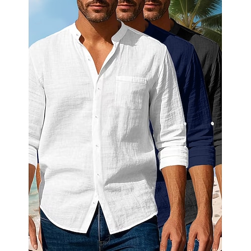 Per uomo Camicia camicia di lino Camicia Guayabera Camicia con colletto a fascia Camicia estiva Abbigliamento mare Informale Giornaliero Nero Bianco Rosa Blu Manica lunga Colletto Mao Primavera estate
