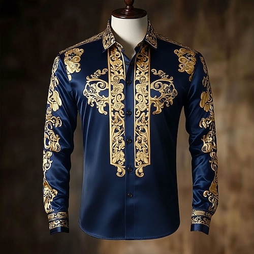 Per uomo Stampa Floreale Etnico Barocco Camicia Camicia in raso Camicia elegante Manica Lunga Vintage Retrò Vacanza Abbigliamento Quotidiano Estate Primavera Autunno Collo ripiegato Stampa 3D Camicie